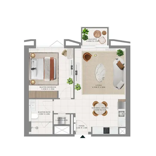 Նախագիծը առաջարկում է տարբեր տեսակների բնակարաններ, ներառյալ 1 և 2 ննջասենյակով բնակարաններ։ 1 ննջասենյակի բնակարանների տարածքը կազմում է 708-ից 779 քմ, իսկ 2 ննջասենյակի բնակարանների՝ 1,095-ից 1,352 քմ։ Յուրաքանչյուր միավոր պատշաճ կերպով ավարտված է, ինչը թույլ է տալիս նոր սեփականատերերին անմիջապես մուտք գործել առանց լրացուցիչ վերանորոգման կարիք։